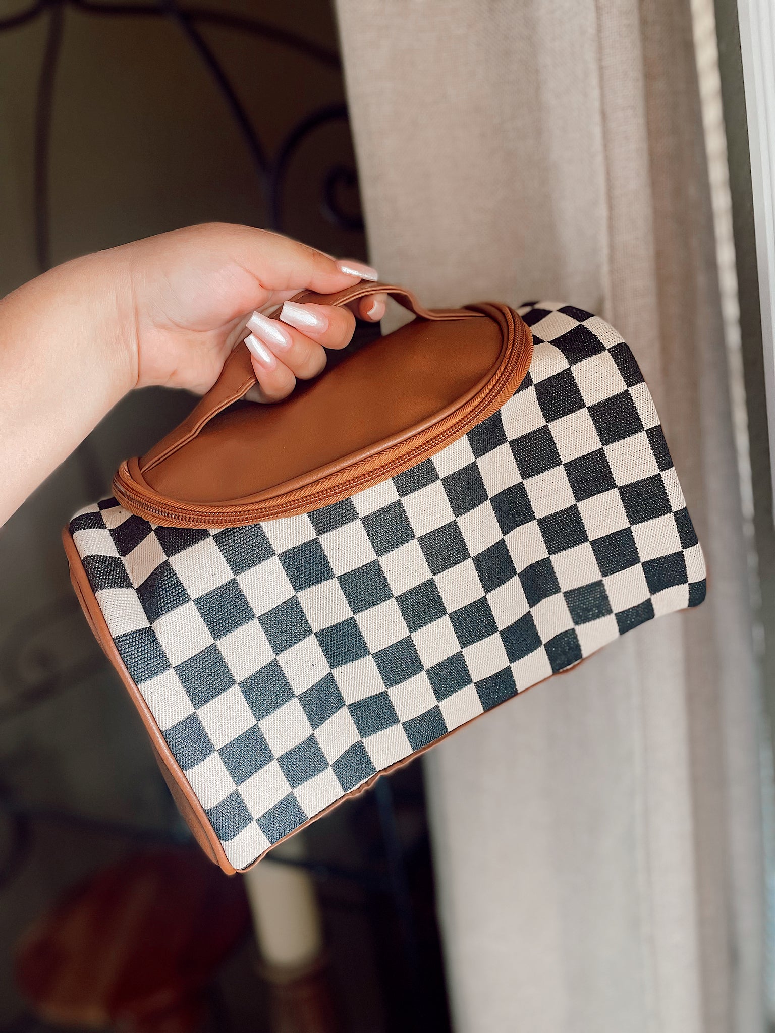 cute on the go travel bag! Perfect to carry your makeup, your hair accessories, your toiletries, etc… it is so spacious! And it even has a zipper in the inside!