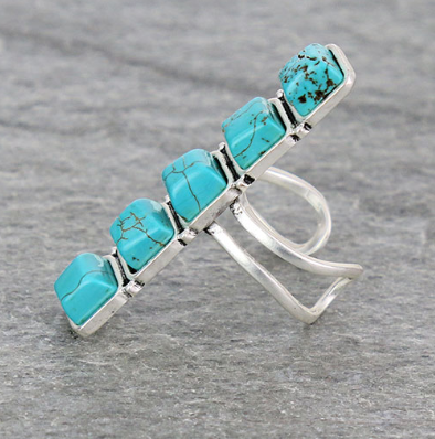 1.7″ Long, Bar Natural Stone Adjustable Ring, Brass Dual Band