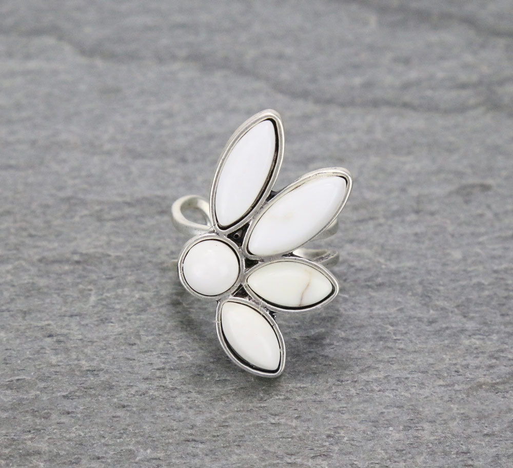 1.2″ Long, Natural White Stone Adjustable Ring, Bronze Double Band