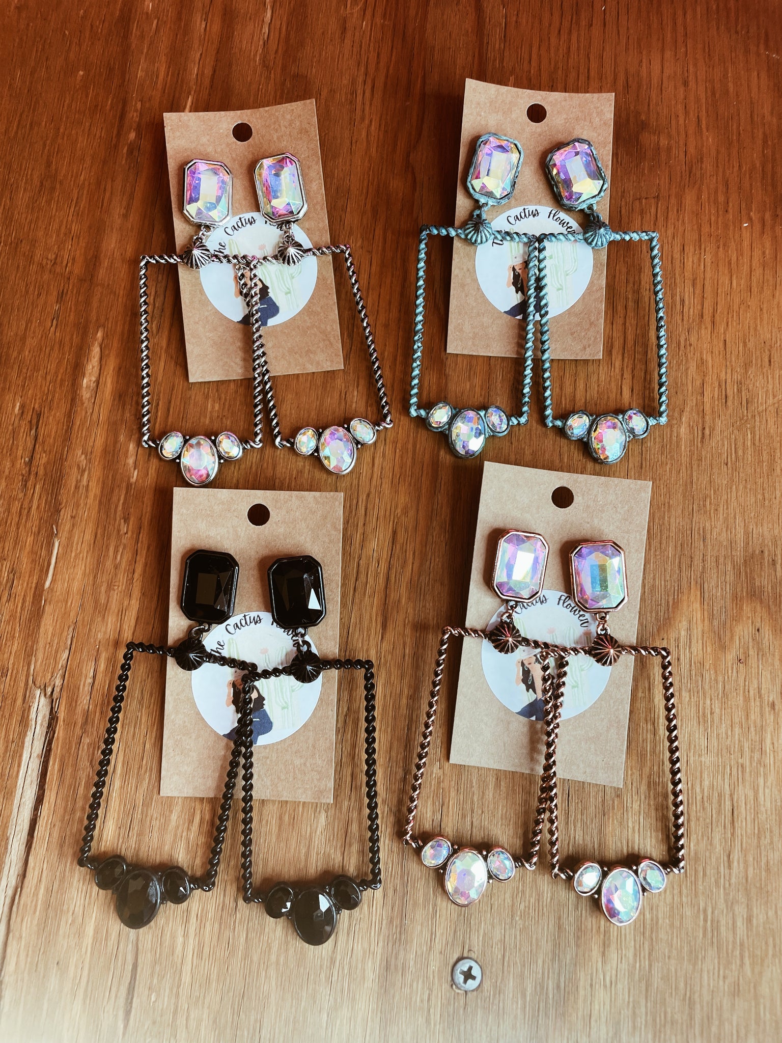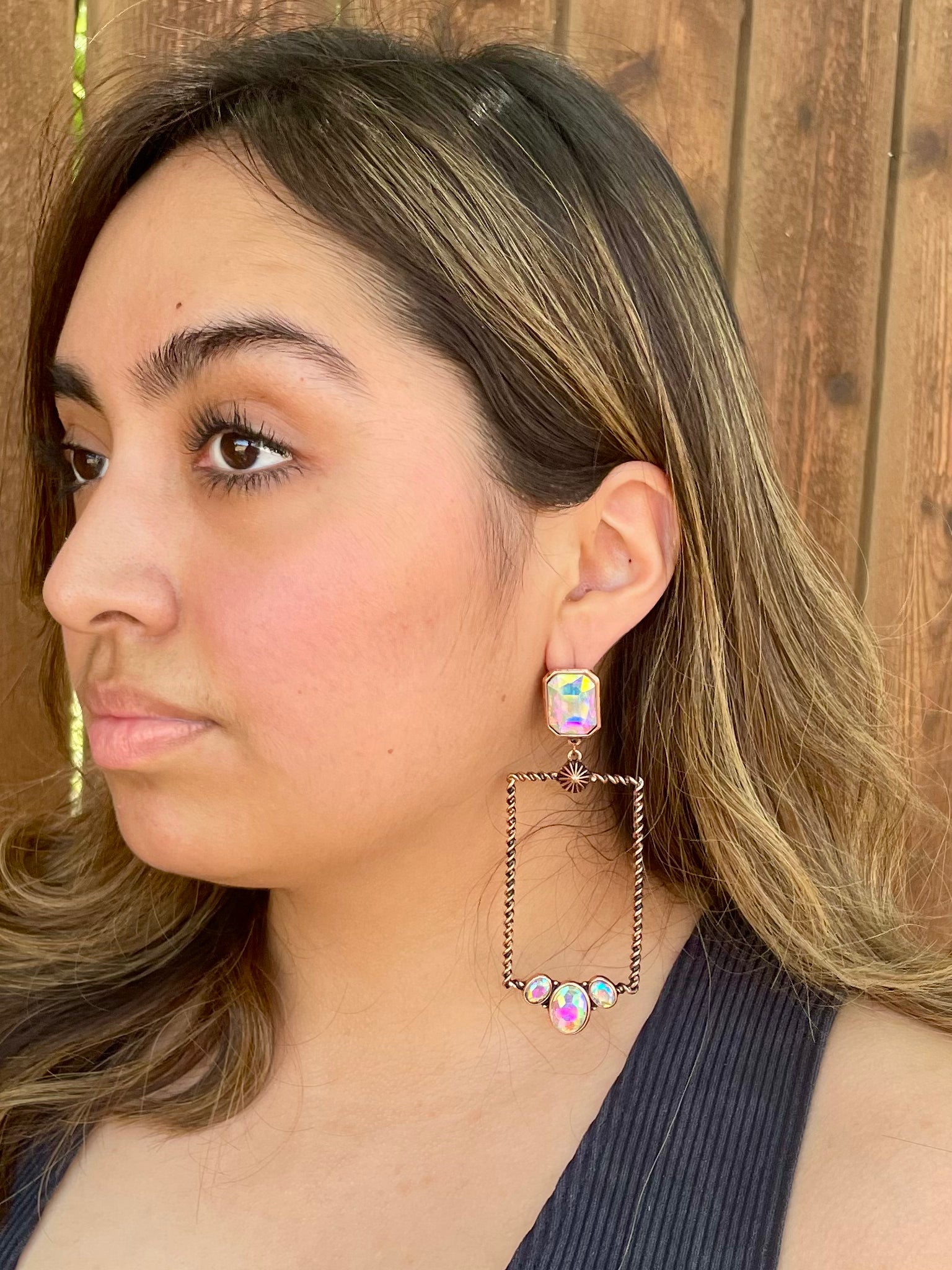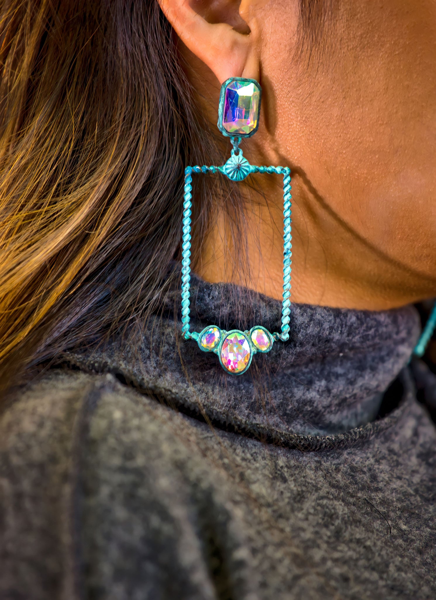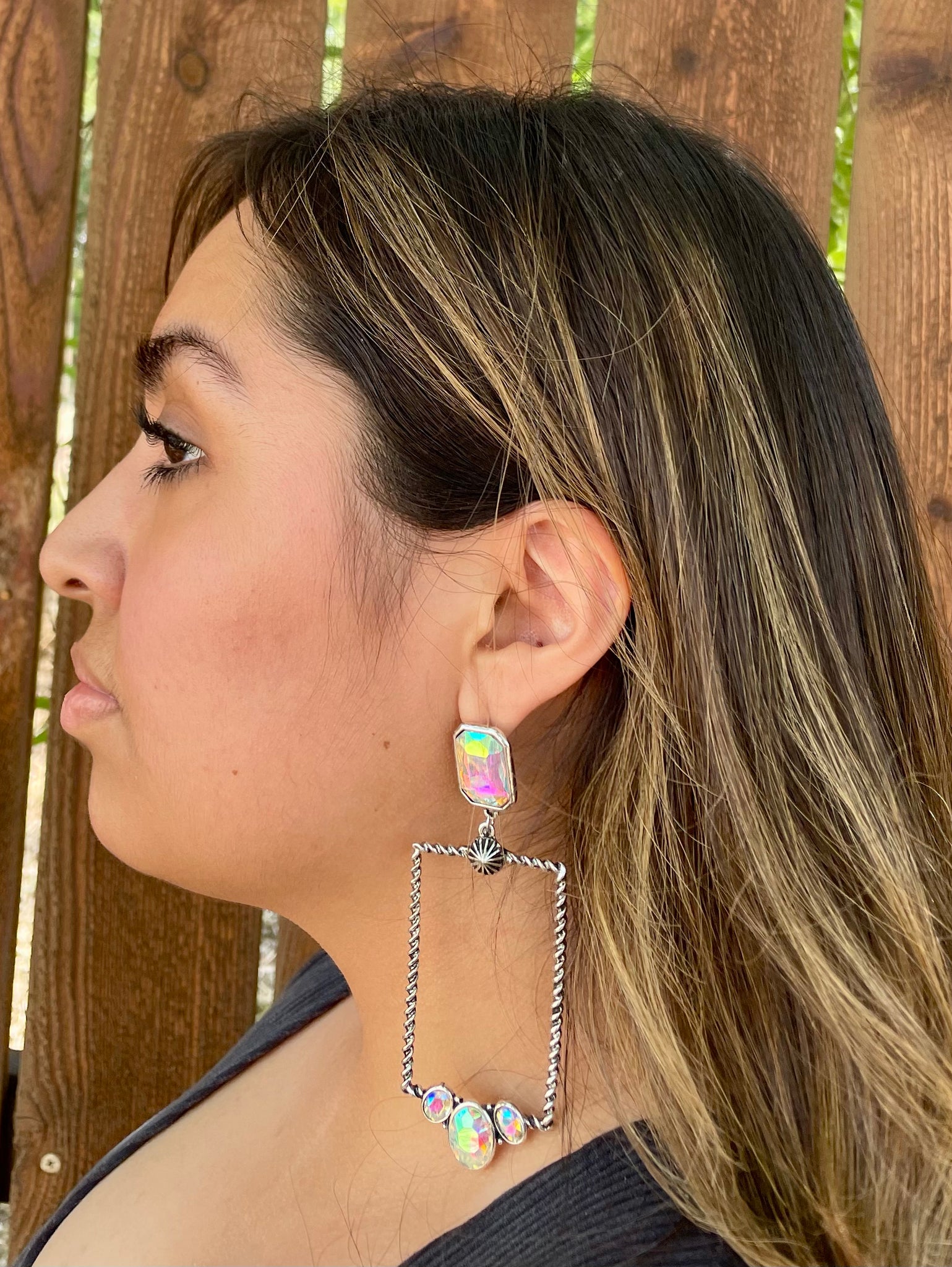 Glass Stone Rectangle Iridescent Earrings