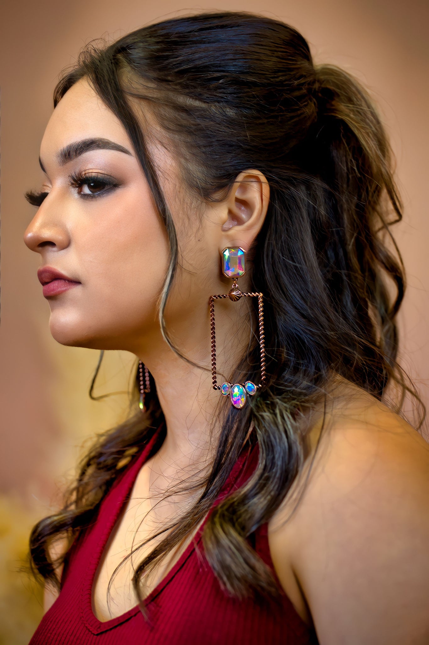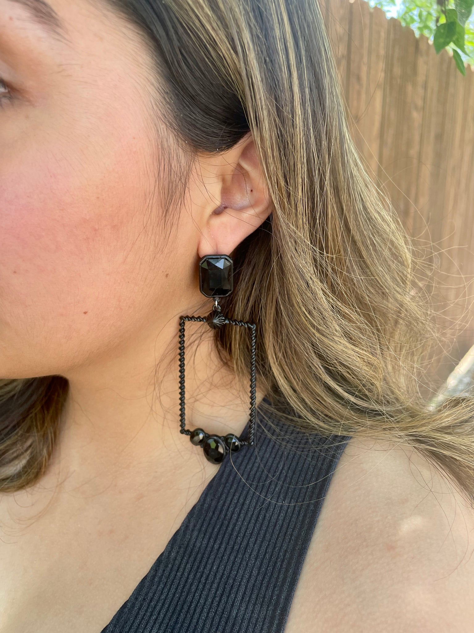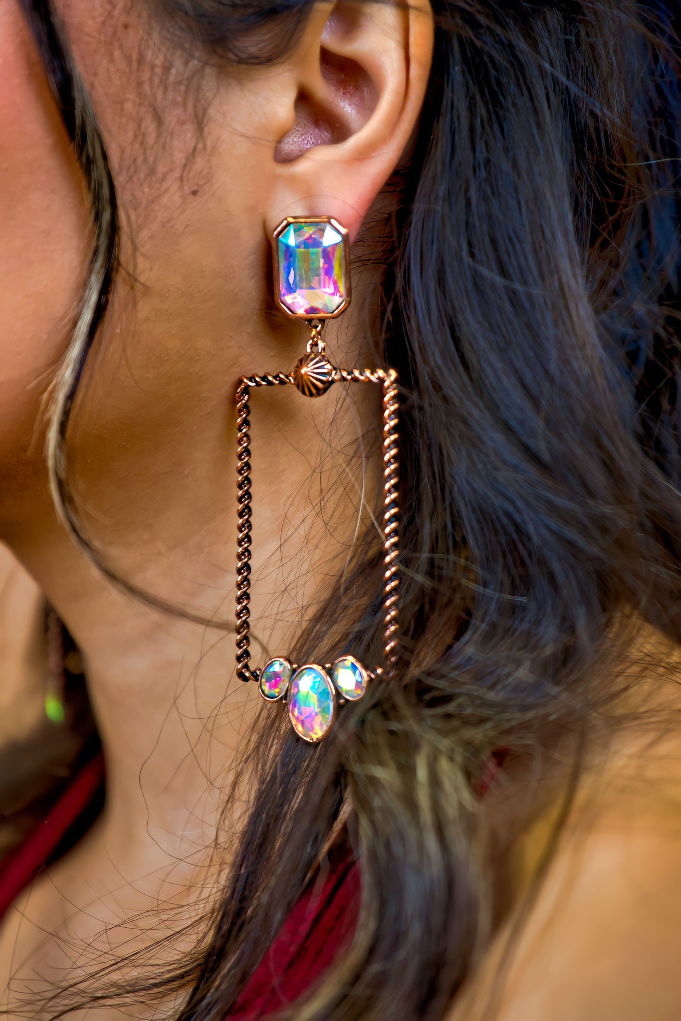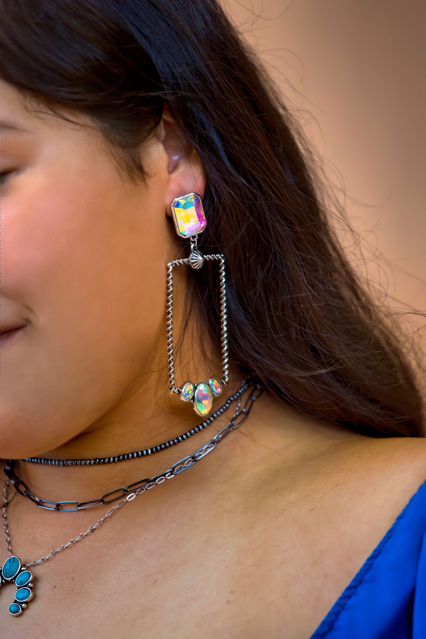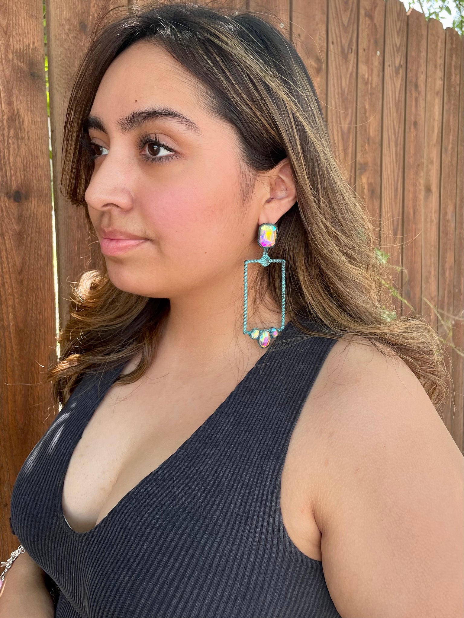 Glass Stone Rectangle Iridescent Earrings